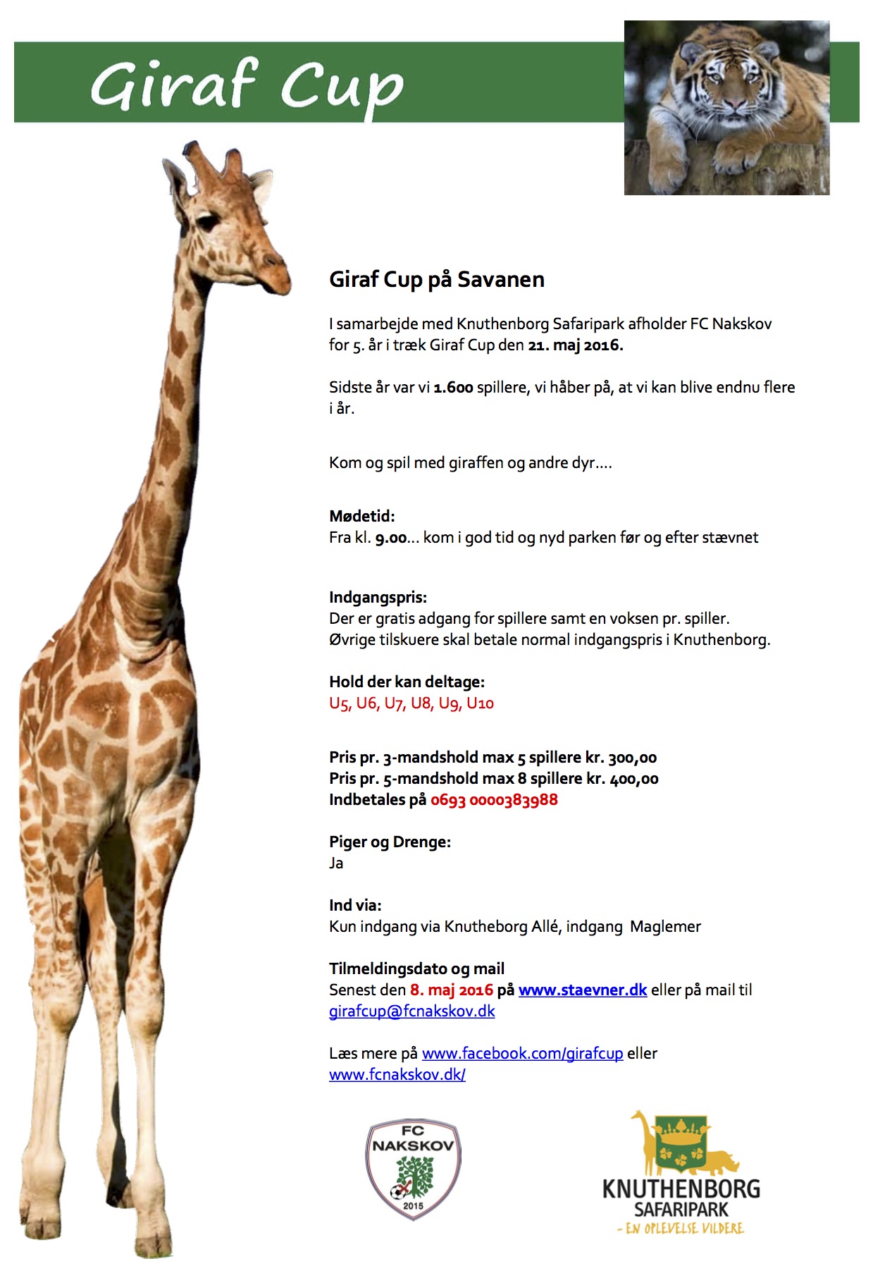 FC Nakskov afholder igen i 2016 Giraf Cup i samarbejde med Knuthenborg Safaripark.